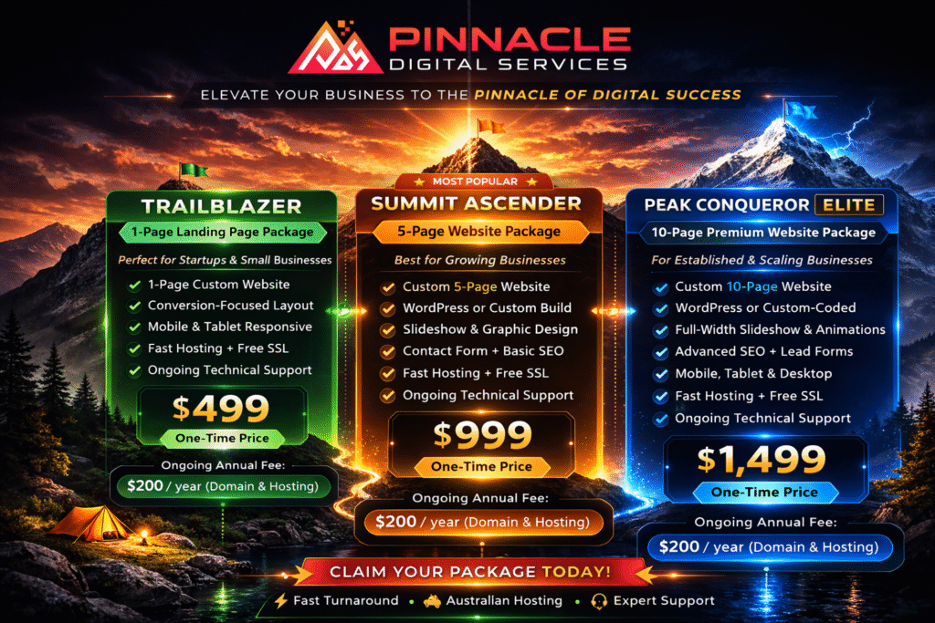 The Peak Conqueror Elite package is built for businesses that want a bold, premium presence — featuring a fully customised 10-page premium website designed to build authority and generate high-quality enquiries.